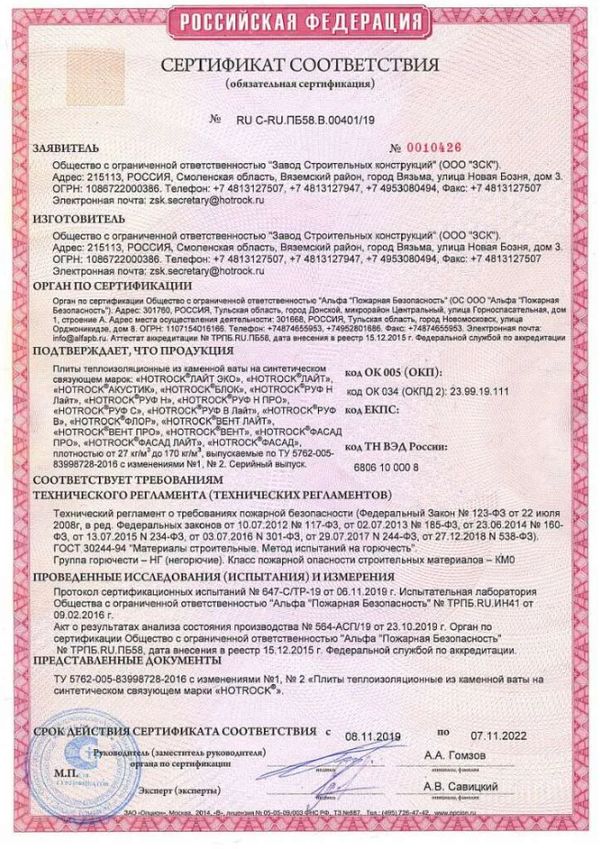 Группа горючести данного материала - НГ (негорючий), что делает его безопасным в использовании. Базальтовая вата Hotrock Фасад 90х600х1200 не поддерживает горение и не выделяет вредных веществ при нагреве.
