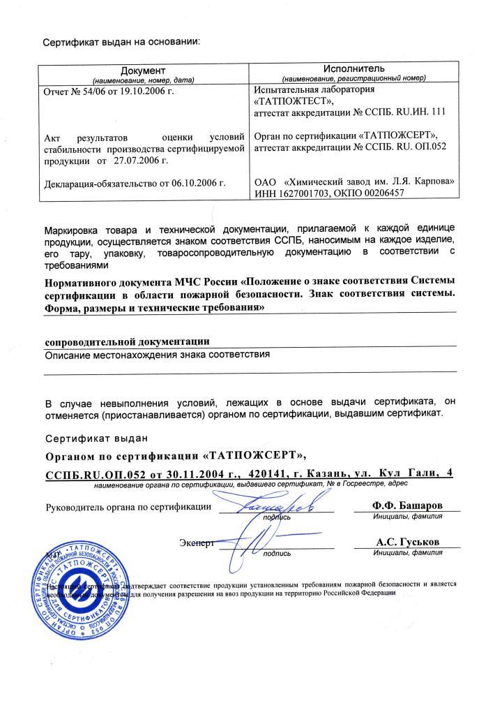• Группа горючести: НГ (негорючий)